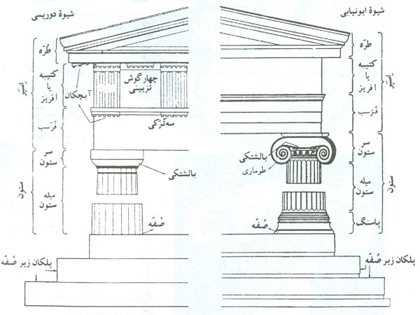 توضیحات شیوه ستون ها در معماری یونان باستان