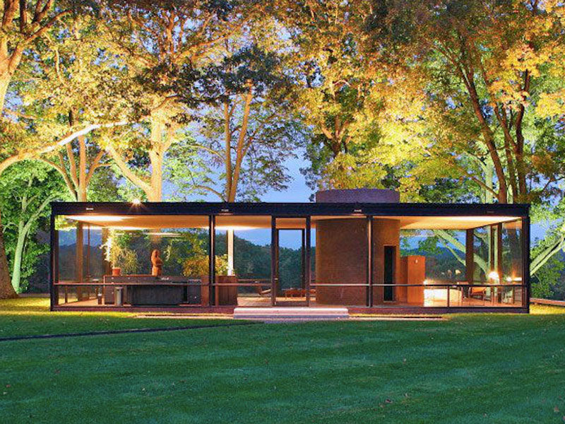 2. خانه شیشه ای اثر فیلیپ جانسون، واقع در کانکتیکات آمریکا