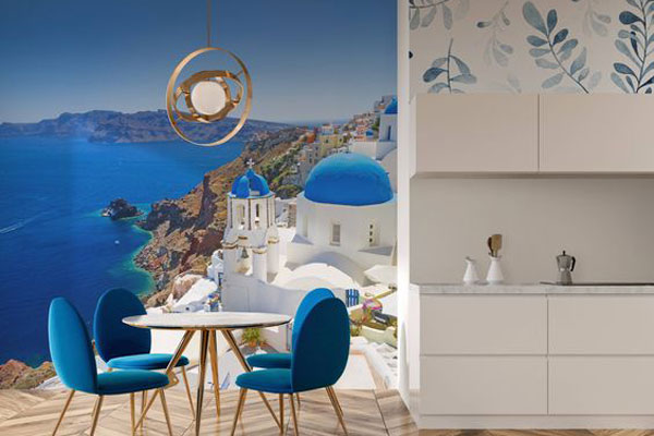 ایده ی استفاده از کاغذ دیواری سه بعدی بسیار جذاب است. شما می توانید هنگامی که در اتاق ناهارخوری مشغول به خوردن غذا هستید حس کنید که در جنگلی آرام یا در کنار ساحلی زیبا قرار گرفته اید. این ایده برای طراحی اتاق ناهارخوری خانه های ویلایی و ساحلی بسیار کاربردی است و روحیه ی دلچسبی به اتاق ناهار خوری می دهد.